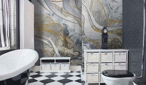 Все изображения из новой коллекции «Misto» могут быть выполнены на любой текстуре фресок и фотообоев, в том числе и единым полотном (без стыков) до 10,0х3,14 м. Столь же эффектно дизайны будут смотреться на фотоплитке и мозаике Fabrizio Roberto®.