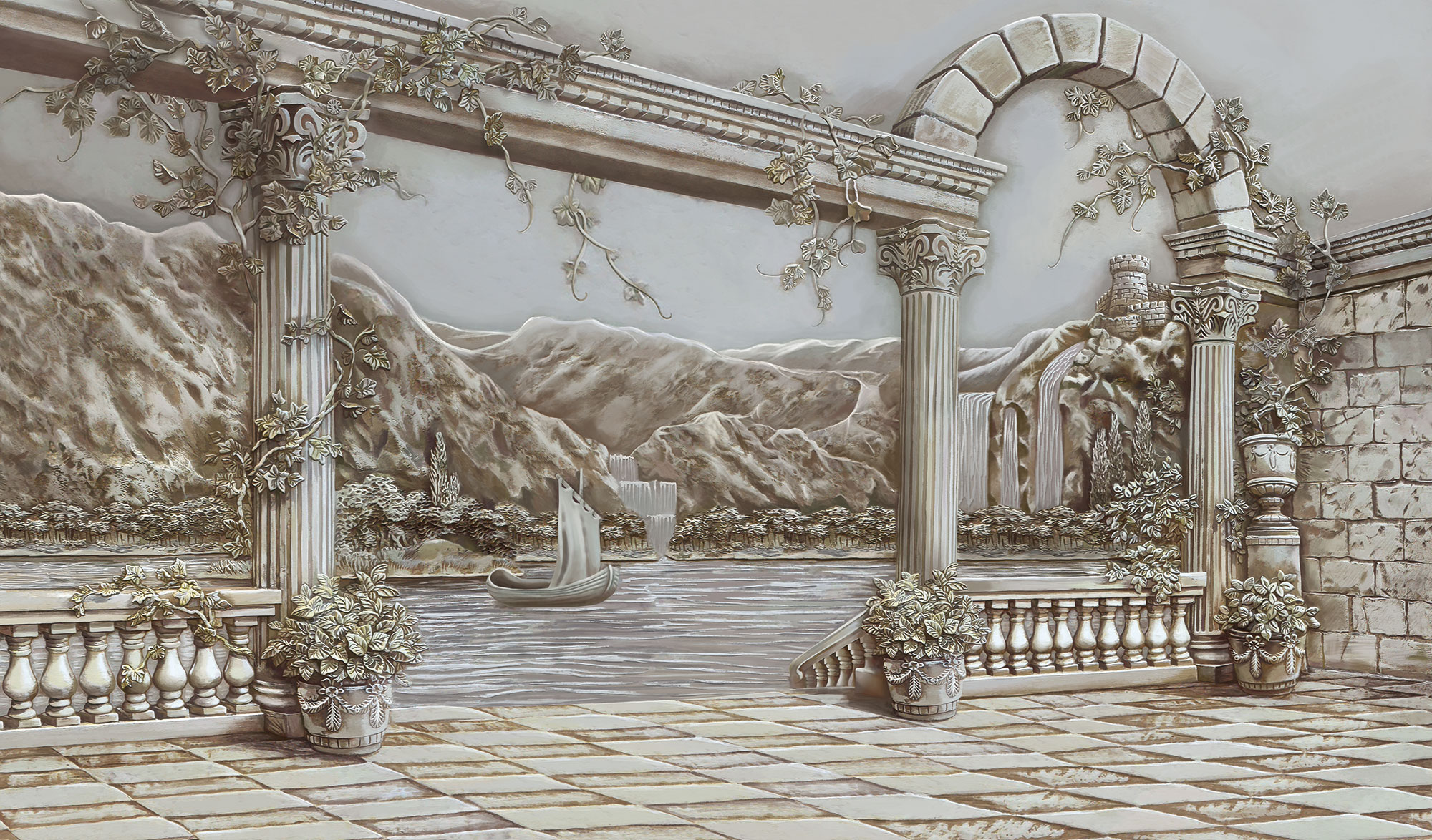 Водопад в античном саду