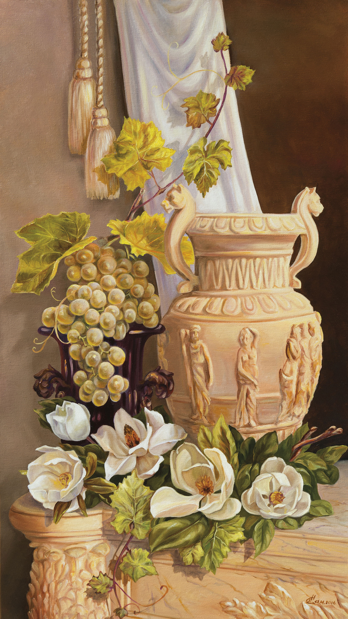 С римской вазой и лозой винограда